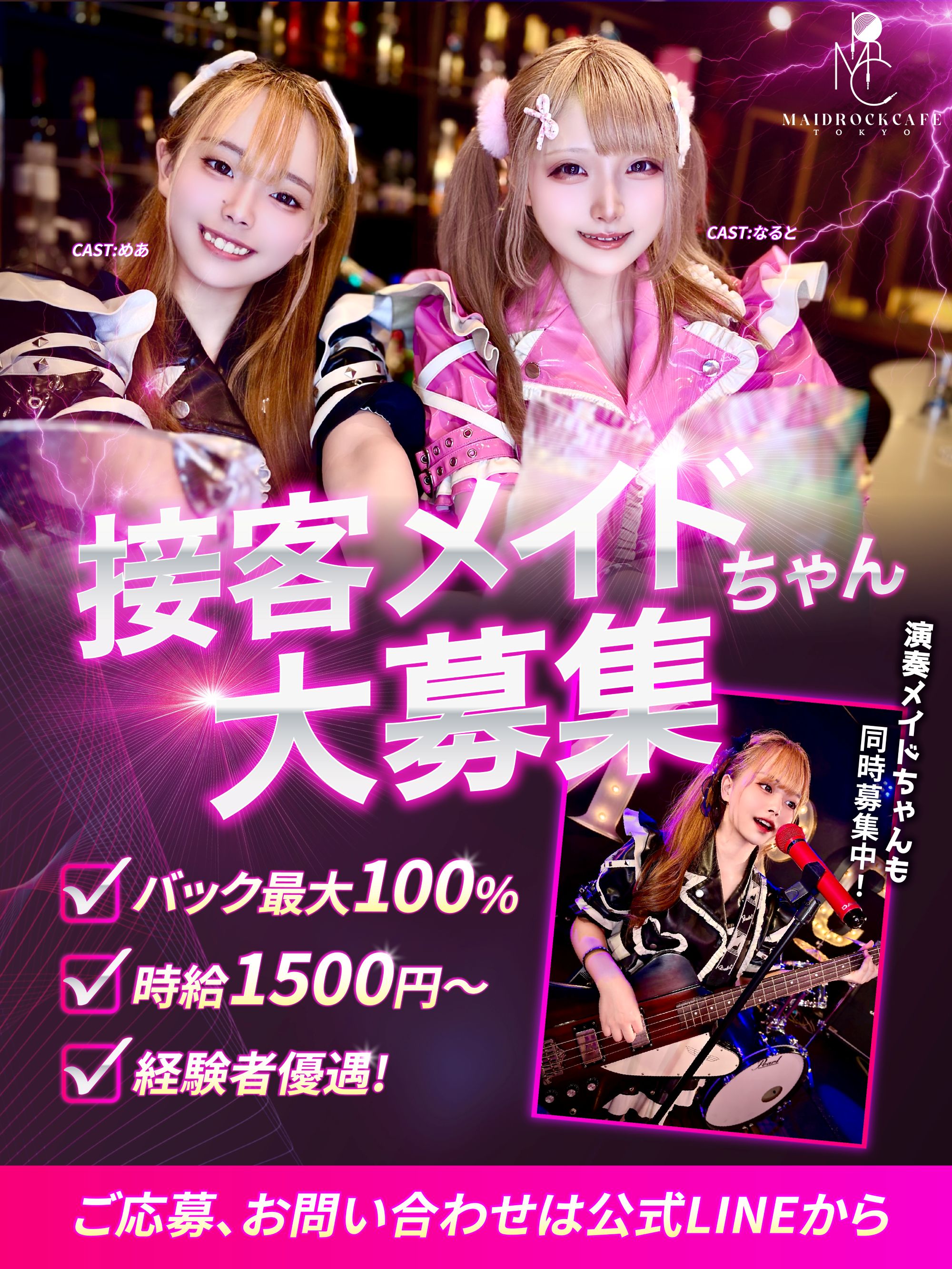 メイドロックカフェの業務を中心に、日によっては系列店での勤務もお願いしています。